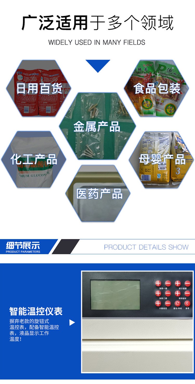 - 適用范圍廣:可用于各種塑料薄膜、鋁箔復(fù)合膜等包裝材料的封口,適用于不同行業(yè)和產(chǎn)品的包裝需求,如食品、醫(yī)藥、日化、五金、化工等,具有很強(qiáng)的通用性和適應(yīng)性123.