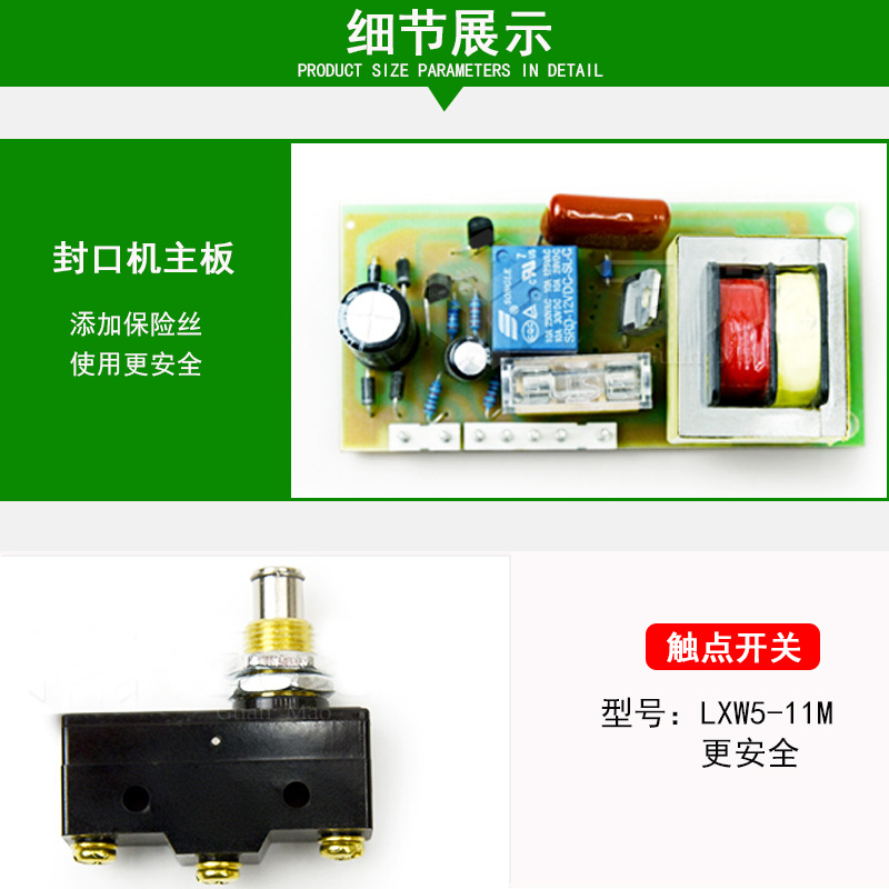 - 腳踏裝置:腳踏板是腳踏封口機(jī)的重要組成部分,通常設(shè)計(jì)有防滑紋理,以確保操作人員踩踏時(shí)的安全性和穩(wěn)定性。腳踏板通過連桿與封口部件相連,連桿一般由金屬材質(zhì)制成,具有足夠的強(qiáng)度和韌性,能有效傳遞力量。