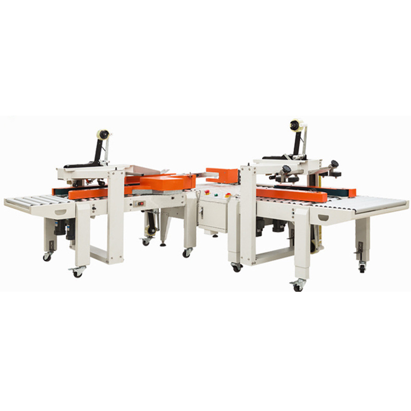 • 一字封箱機:結(jié)構(gòu)相對簡單,主要由輸送帶、膠帶供給系統(tǒng)、膠帶粘貼裝置和切割裝置組成,沒有涉及紙箱旋轉(zhuǎn)或復(fù)雜的膠帶方向轉(zhuǎn)換裝置。
