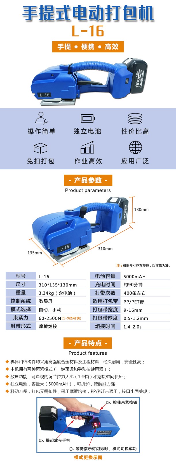 L-16手持電動(dòng)打包機(jī)的優(yōu)勢(shì)是什么呢?