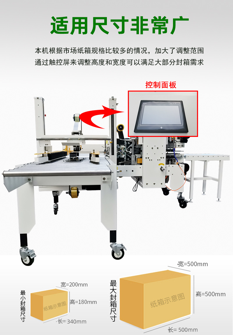 • 適應(yīng)性強(qiáng):得益于調(diào)節(jié)裝置,能夠輕松應(yīng)對(duì)不同大小、長(zhǎng)寬高各異的紙箱,滿足多樣化的包裝需求,減少了因紙箱規(guī)格變化而頻繁更換設(shè)備的麻煩。