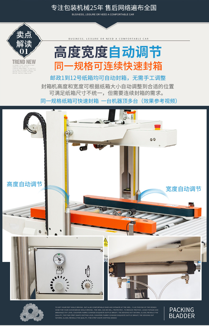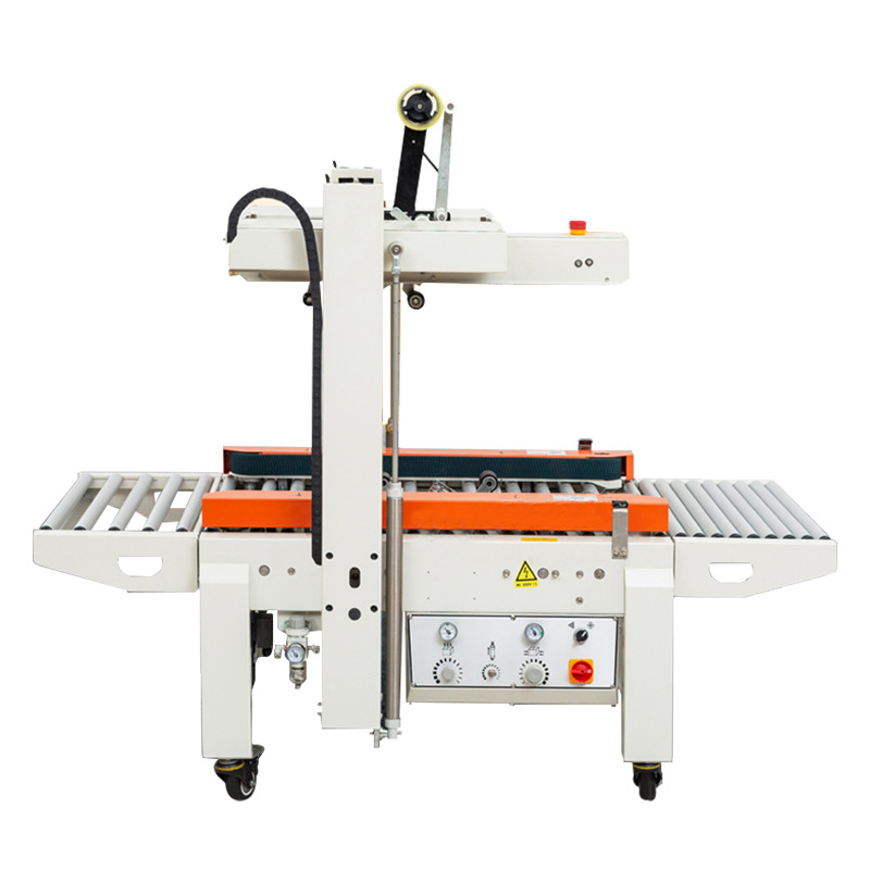 - 準(zhǔn)備工作:首先檢查封箱機(jī)是否完好無(wú)損,各部件是否正常運(yùn)行。將需要封箱的紙箱準(zhǔn)備好,確保紙箱的尺寸符合封箱機(jī)的適用范圍,并將封箱膠帶安裝在封箱機(jī)的膠帶卷軸上,調(diào)整好膠帶的位置和張力。