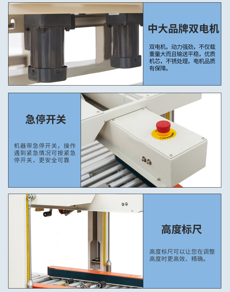 - 安全操作:在封箱機(jī)運(yùn)行過(guò)程中,嚴(yán)禁將手或其他物品伸入輸送帶、封箱裝置等運(yùn)動(dòng)部件中,以免發(fā)生意外傷害。同時(shí),要確保設(shè)備接地良好,防止觸電事故的發(fā)生。