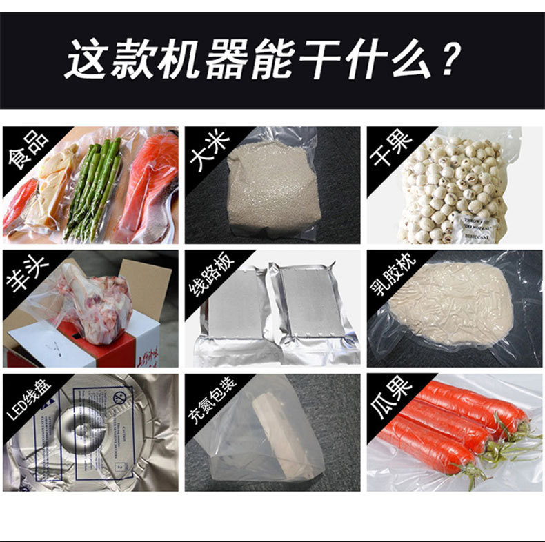 - 內(nèi)抽式真空包裝機(jī):適用于各種形狀、尺寸和質(zhì)地的產(chǎn)品,尤其是對(duì)包裝密封性要求較高、需要完全隔絕空氣的產(chǎn)品,如食品、電子元件、藥品等。