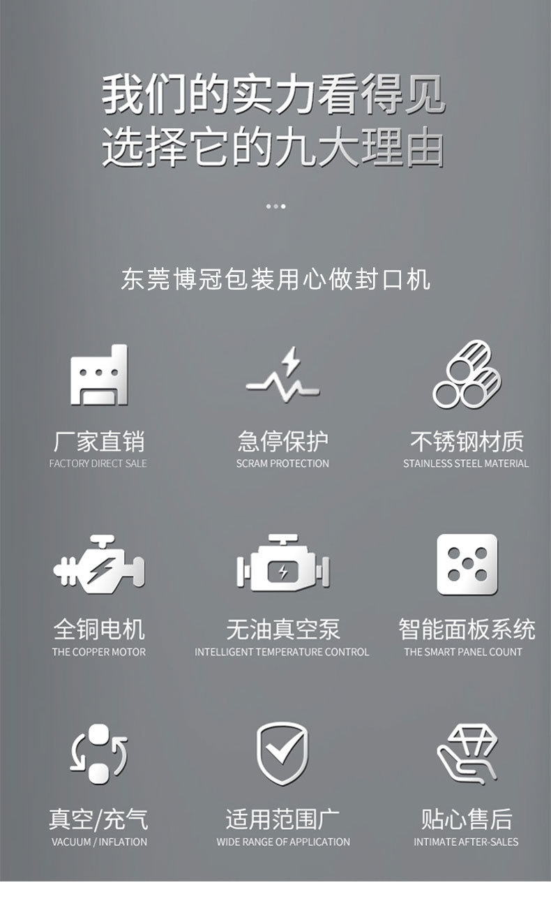 - 內(nèi)抽式真空包裝機(jī):有一個(gè)密封的真空室,通常由不銹鋼制成,配備真空泵、真空表、熱封裝置等。真空室體積較大,以便容納不同尺寸的產(chǎn)品和包裝材料。