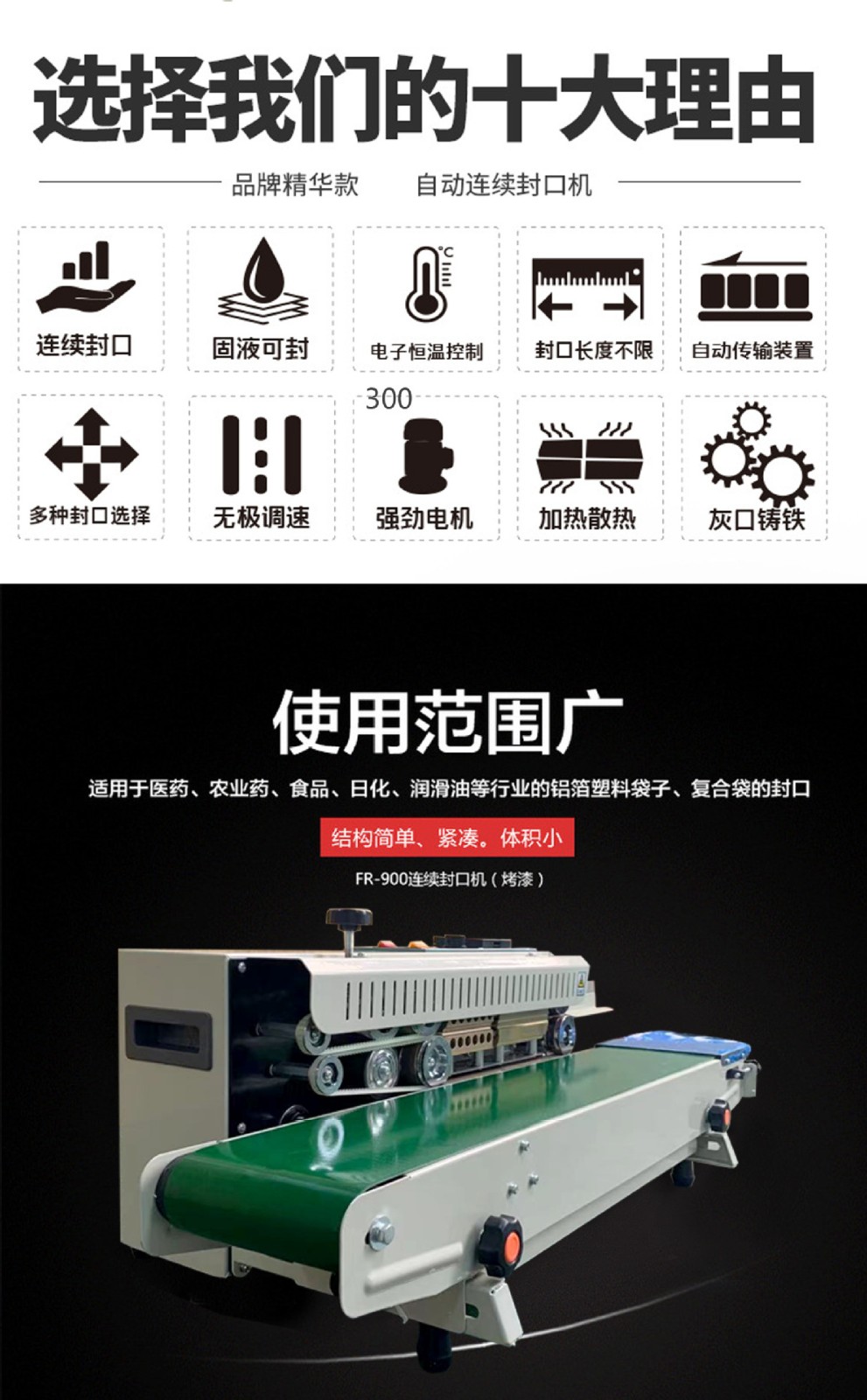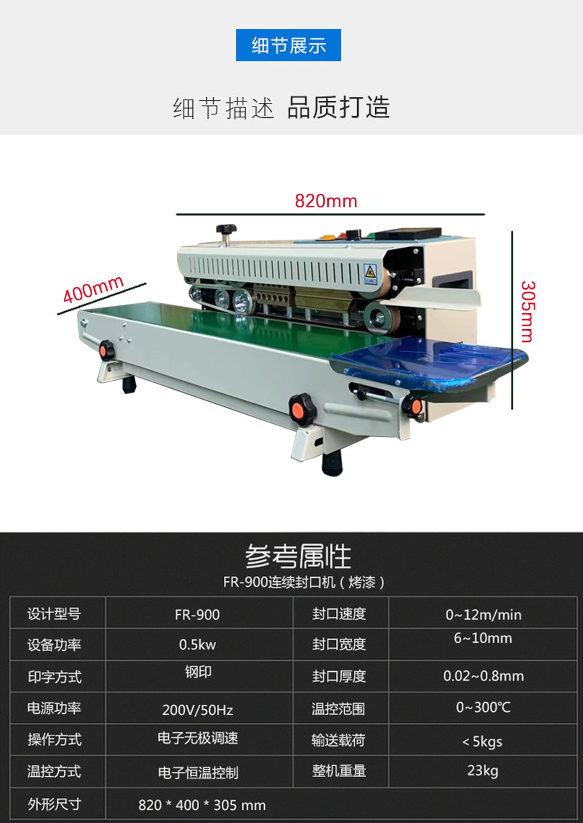 連續(xù)封口效率高:采用自動輸送和連續(xù)加熱封口方式,無需間歇操作,能持續(xù)不斷地對包裝袋進行封口,大大提高了生產(chǎn)效率,適用于大規(guī)模的生產(chǎn)包裝作業(yè)。
