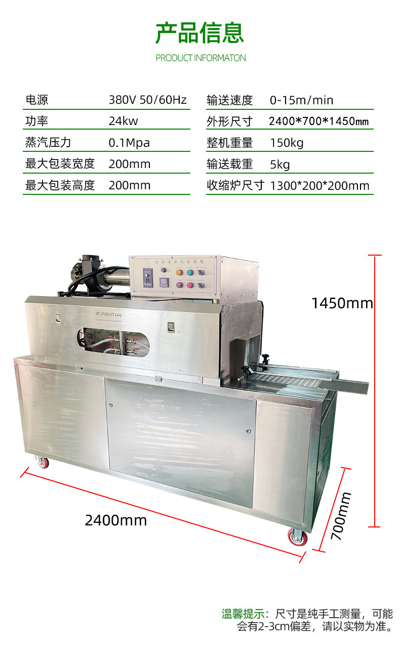 - 節(jié)能高效:優(yōu)化的蒸汽產(chǎn)生和利用系統(tǒng),有效降低了能源消耗,同時(shí)提高了收縮的速度和質(zhì)量。