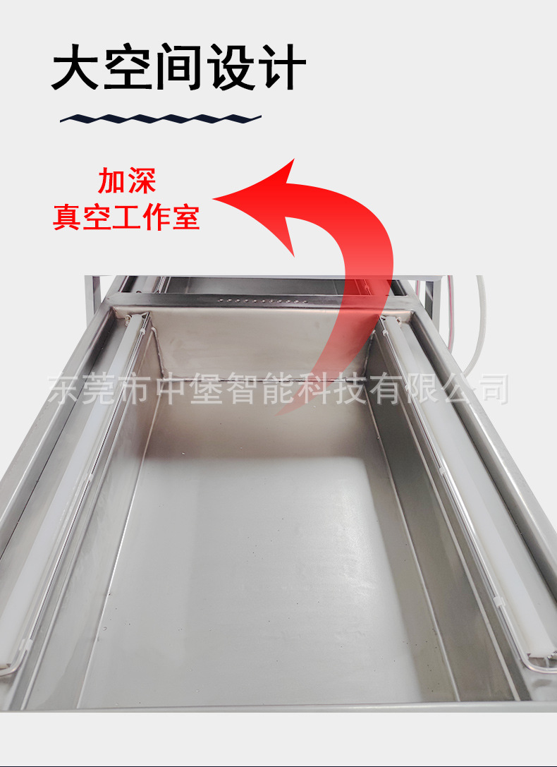 600型凹槽加深款真空包裝機(jī)凹槽設(shè)計(jì)使得包裝物品能夠更好地固定和定位,在抽真空和封口過(guò)程中保持穩(wěn)定,從而提高包裝的精度和質(zhì)量