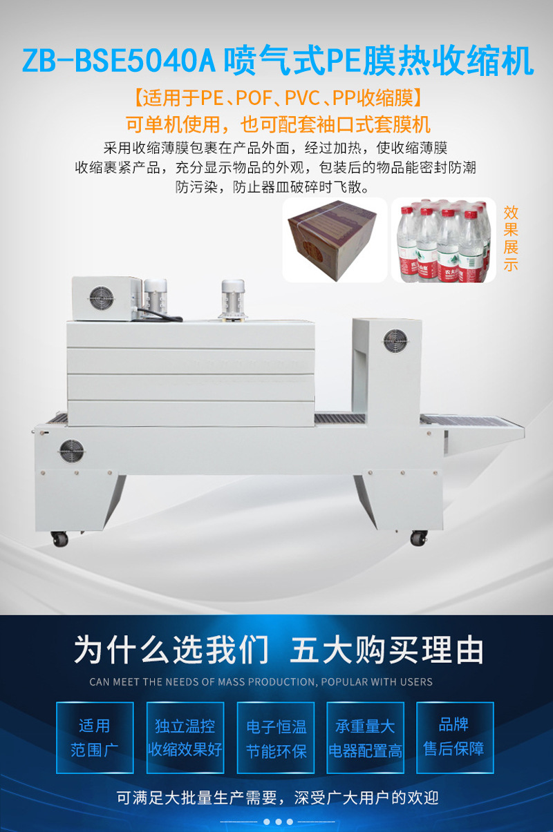 • 兼容多種包裝膜:可使用多種類(lèi)型的熱收縮膜,如 PVC、POF、PE 等,企業(yè)可根據(jù)產(chǎn)品特性、包裝成本和市場(chǎng)需求選擇合適的膜材。