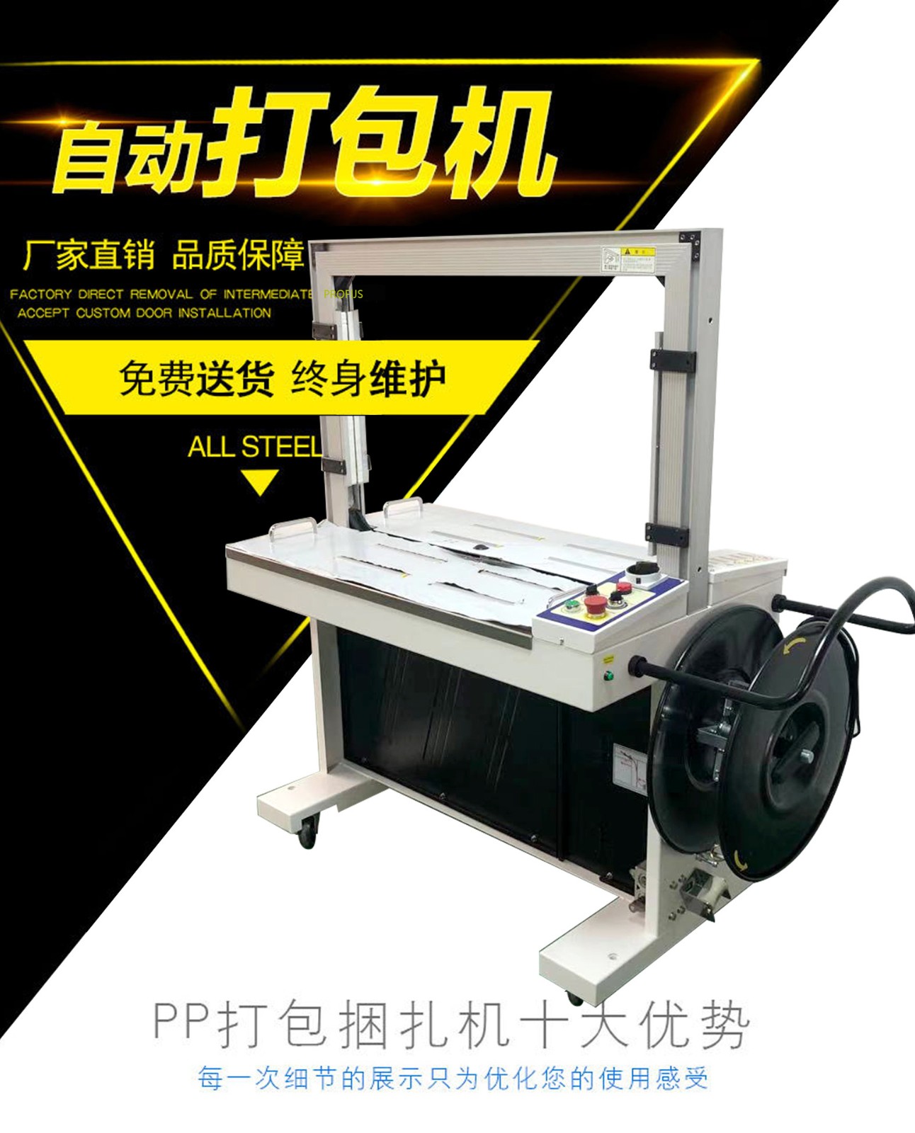 - 適用范圍廣:可以適用于各種不同形狀和尺寸的物品捆扎,如紙箱、木箱、塑料箱等。