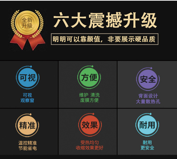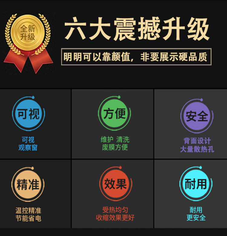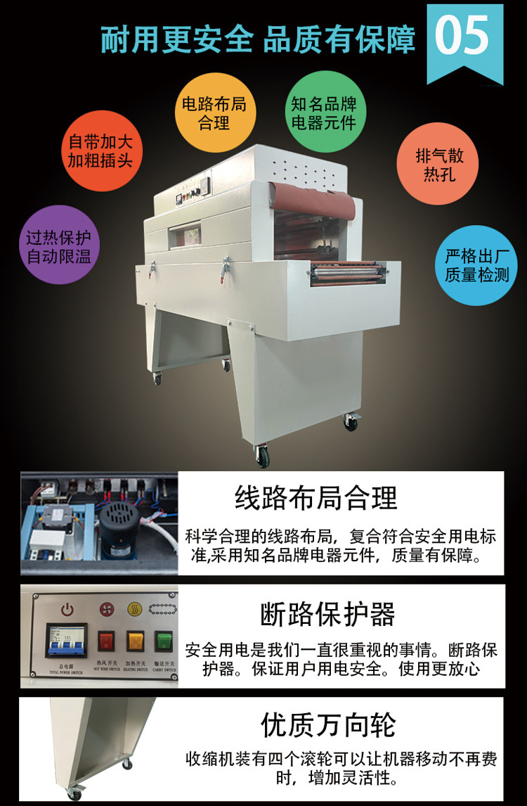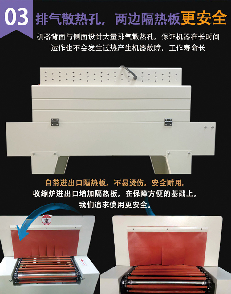- 溫度控制系統(tǒng)的精度很重要,一般能夠精確控制在 ±5℃左右,這確保了薄膜在合適的溫度范圍內(nèi)收縮,避免因溫度過高導(dǎo)致薄膜損壞或者溫度過低而收縮不完全的情況。