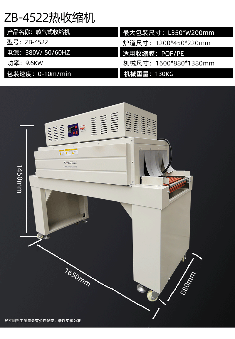 - 薄膜輸送與套膜:與此同時,熱收縮薄膜(常見材質如 PVC、PE、PP 等)會從薄膜卷軸上被源源不斷地輸送出來。當物品被輸送到合適位置時,薄膜會在相關機構的作用下,自動套在待包裝物品的外圍,形成初步的包裹狀態(tài)。