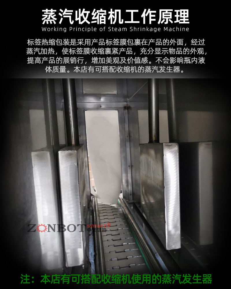蒸汽收縮機(jī)工作原理是通過蒸汽收縮機(jī),標(biāo)簽薄膜會(huì)緊密地貼合在易拉罐表面,不僅起到裝飾作用,還能保護(hù)標(biāo)簽不受磨損