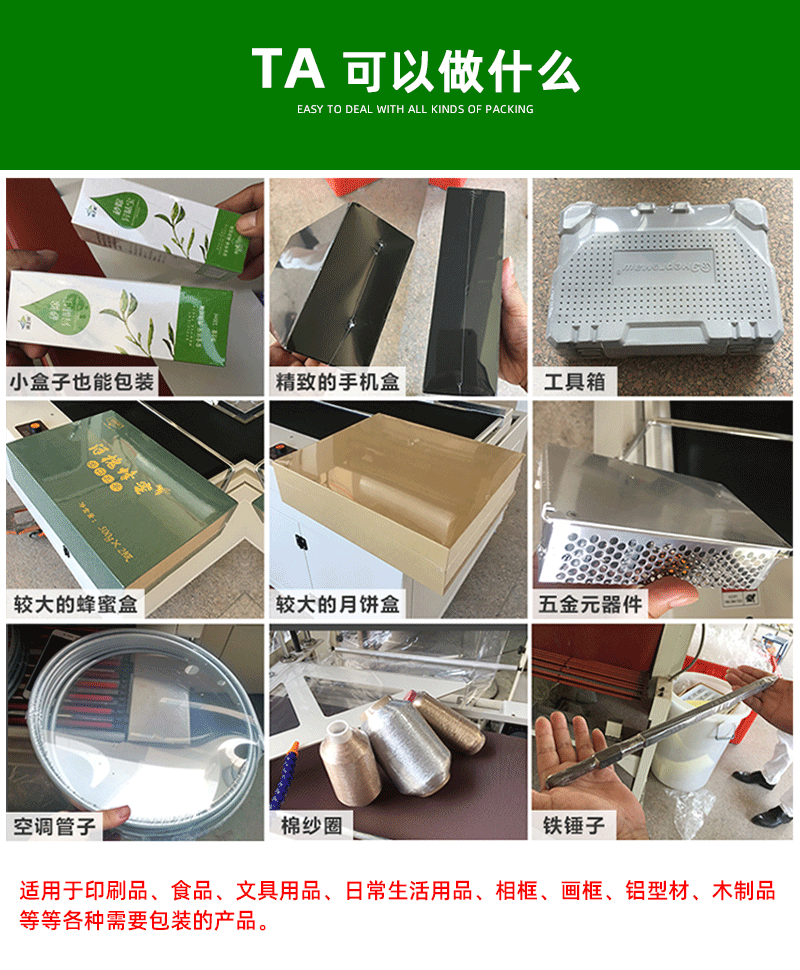 • 對各種小型電子設(shè)備和配件(如耳機、充電器、存儲卡等)進行包裝。它可以快速、準確地完成包裝過程,并且保證包裝的緊密性,防止電子設(shè)備在運輸和儲存過程中受到灰塵、水分等因素的影響。