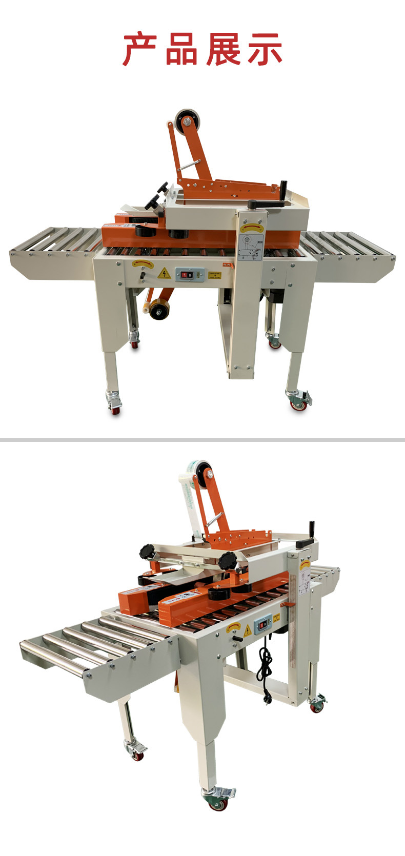 它主要是通過機(jī)械傳動(dòng)裝置,帶動(dòng)膠帶輸送和粘貼機(jī)構(gòu)來工作。當(dāng)紙箱通過輸送帶被輸送到封箱機(jī)的工作區(qū)域時(shí),機(jī)器內(nèi)部的滾輪或者皮帶會(huì)夾緊紙箱,使其保持穩(wěn)定的位置。然后,封箱機(jī)的膠帶切割和粘貼裝置會(huì)將膠帶從膠帶卷上拉出,按照預(yù)先設(shè)定的路徑,先粘貼紙箱的一側(cè),然后通過機(jī)器的折疊裝置將膠帶繞過紙箱的頂端或底部邊緣,最后粘貼在紙箱的另一側(cè),從而完成封箱動(dòng)作。