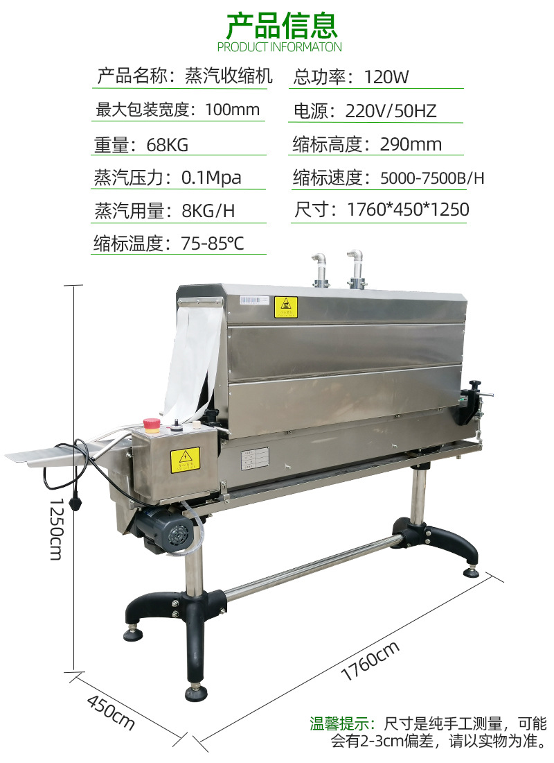 - 封切好的產(chǎn)品隨后被輸送到熱收縮區(qū)域。熱收縮區(qū)域一般通過熱風、蒸汽或紅外線等方式提供熱量。如果是熱風方式,熱風機產(chǎn)生的高溫空氣在收縮通道內(nèi)循環(huán),使薄膜受熱收縮;若是蒸汽方式,蒸汽包圍產(chǎn)品促使薄膜收縮;紅外線方式則是利用紅外線輻射讓薄膜分子運動加劇而收縮。在熱收縮過程中,薄膜在熱量的作用下逐漸收縮,緊密地包裹住產(chǎn)品,最后經(jīng)過冷卻通道定型。