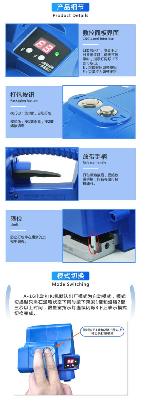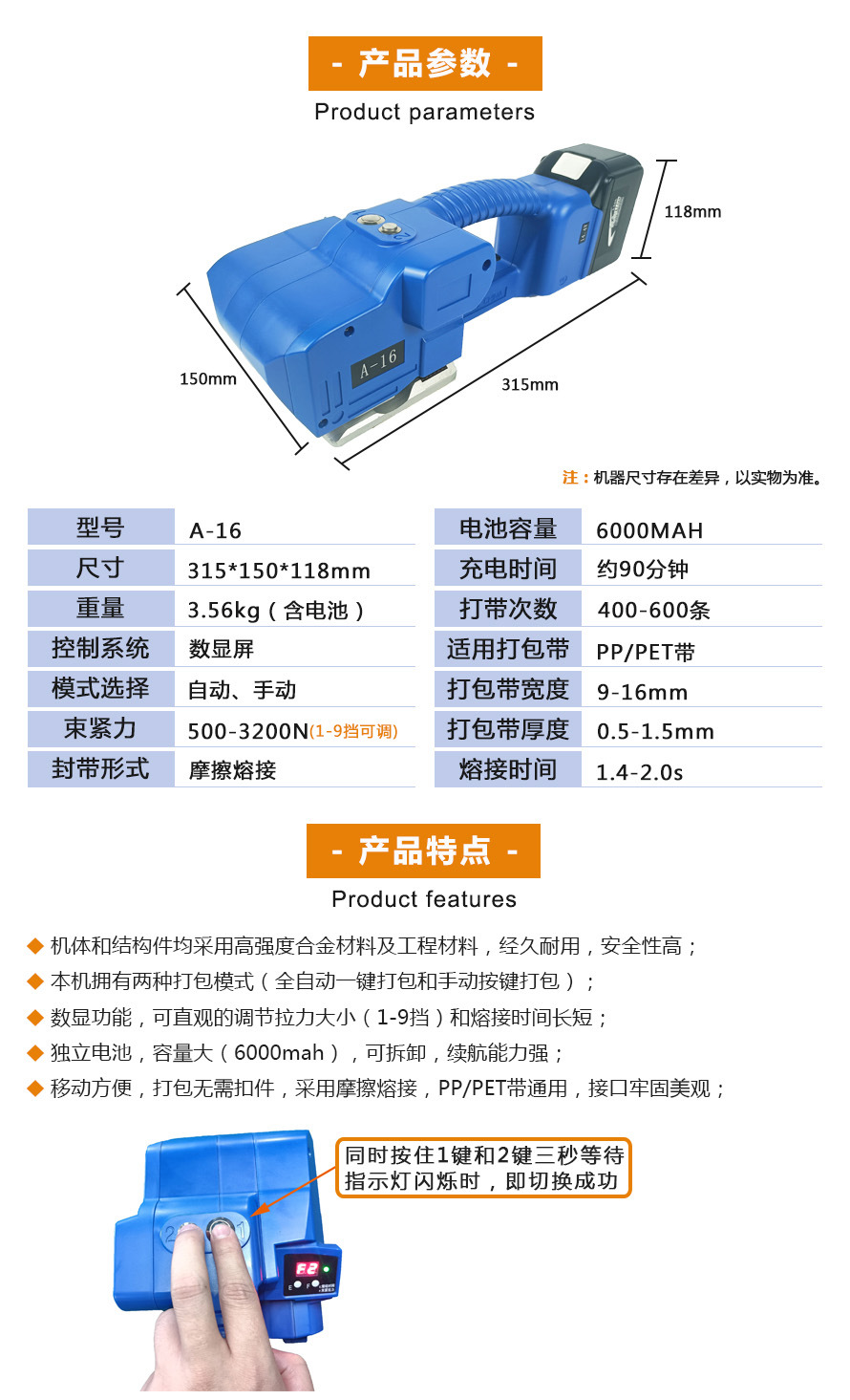 - 操作相對(duì)簡(jiǎn)單,容易上手。無論是手動(dòng)還是電動(dòng)的手持打包機(jī),其操作按鈕和手柄的設(shè)計(jì)都很直觀。操作人員經(jīng)過簡(jiǎn)單的培訓(xùn)就能熟練掌握打包流程,如收緊、熔接和切斷打包帶等操作。