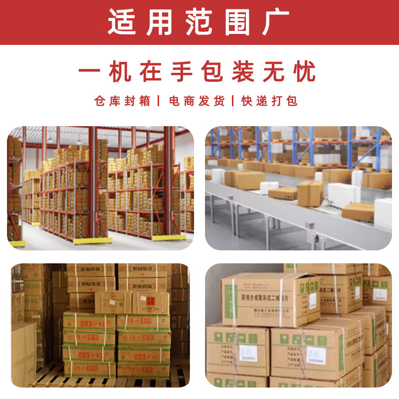 - 適應(yīng)性強(qiáng):可以適應(yīng)多種不同形狀、大小和重量的物品打包。通過調(diào)整傳送帶的速度、打包帶的供給方式和拉緊力度等參數(shù),能夠?qū)Ω鞣N產(chǎn)品包裝箱、托盤貨物等進(jìn)行有效打包。同時(shí),它還能兼容多種類型的打包帶,如 PP(聚丙烯)打包帶、PET(聚對苯二甲酸乙二醇酯)打包帶、鋼帶等,根據(jù)不同的包裝需求選擇合適的打包帶。