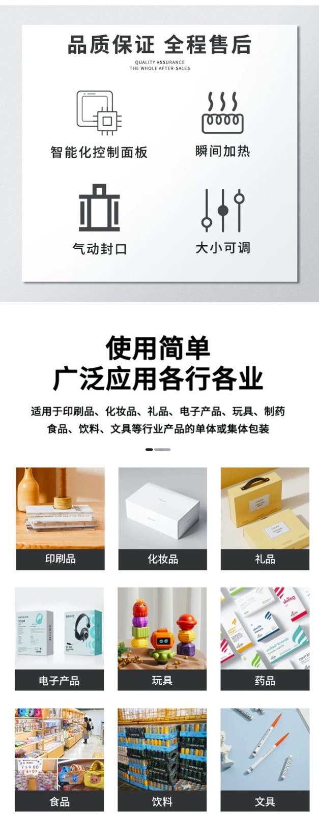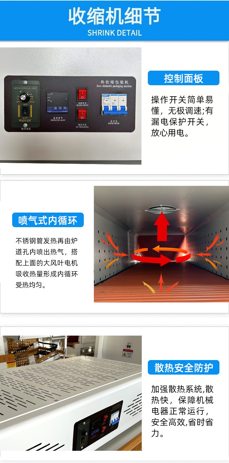 當物料抵達套膜區(qū)域,先進的機械手臂或者自動套膜裝置迅速響應,它們通過精密的傳感器與智能算法,能夠準確識別物料的形狀和尺寸,以毫秒級的速度完成熱收縮膜的套取動作,整個過程一氣呵成,且套膜位置精準無誤,為后續(xù)的封口、切角和熱收縮工序奠定良好基礎。