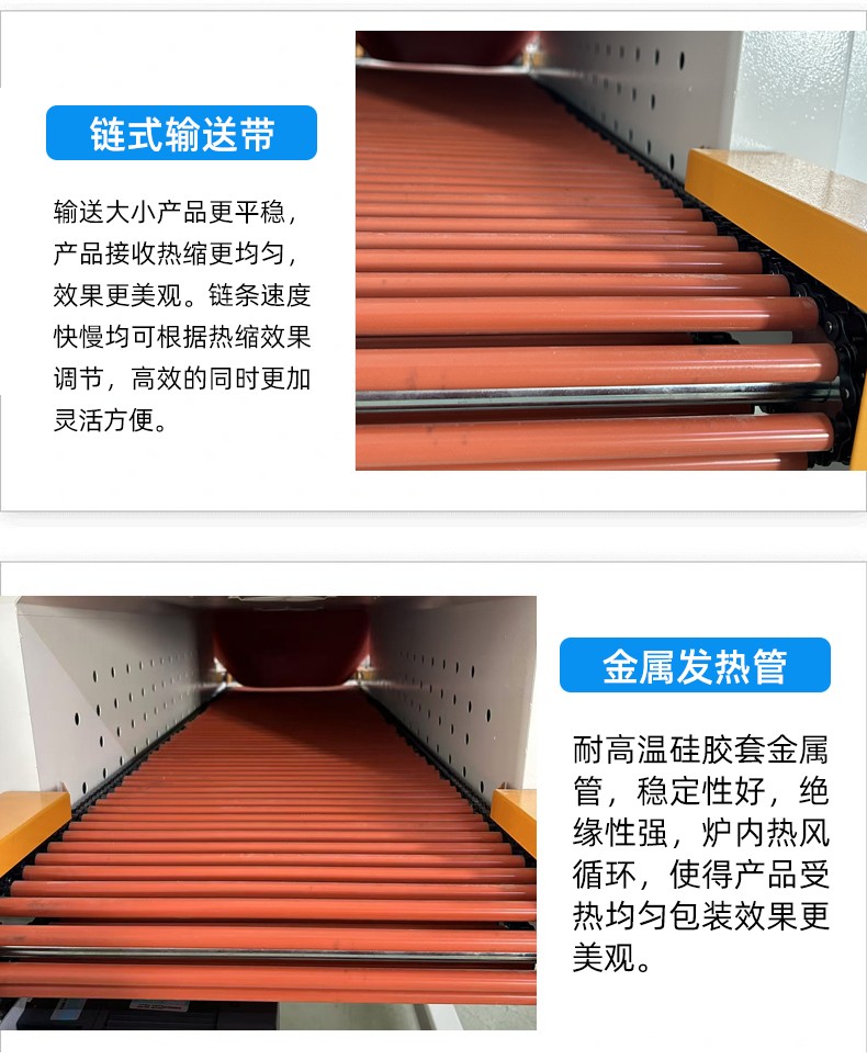 這款氣動封口切角熱收縮機在自動化包裝流程中展現(xiàn)出卓越的性能。在物料輸送環(huán)節(jié),其配備了高精度、高穩(wěn)定性的輸送帶系統(tǒng),能依據(jù)不同產(chǎn)品的重量、尺寸以及包裝需求,精準調(diào)控輸送速度與節(jié)奏,確保物料穩(wěn)定且高效地進入后續(xù)工序,從源頭保障整個包裝流程的流暢性。