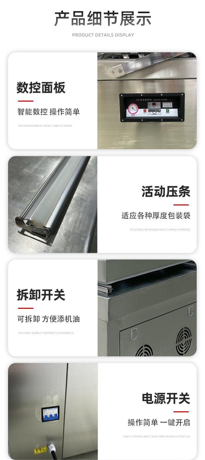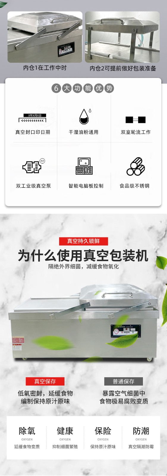 雙室平層真空包裝機的操作流程并不復(fù)雜,通常包括以下步驟: