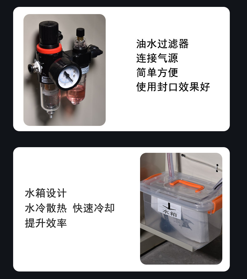 - 水冷系統(tǒng):通過板式換熱器或銅管循環(huán)冷卻水(水溫 15~25℃,流量 3~5L/min),在封口后 0.5~1 秒內(nèi)將溫度降至 50℃以下,使分子鏈快速固化。