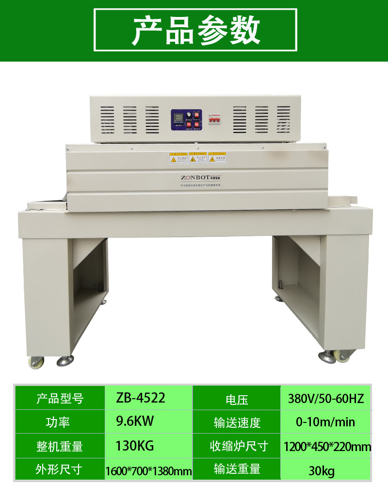 4522內(nèi)循環(huán)熱收縮機(jī)廣泛應(yīng)用于大桶或小瓶裝礦泉水、純凈水等各種瓶形包裝熱收縮