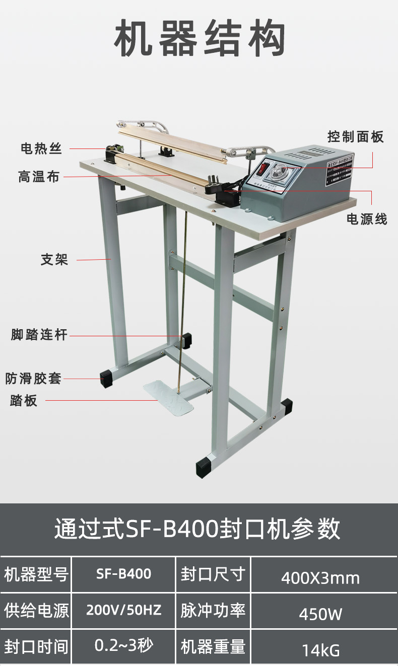 腳踏封口機(jī)是一種理想的封口設(shè)備,?適用于各種塑料袋薄膜的封口及制袋。?它特別適用于醫(yī)藥、?農(nóng)藥、?食品、?日化、?潤滑油等行業(yè)的鋁箔袋、?塑料袋、?復(fù)合袋的封口。?這種設(shè)備利用電氣脈沖技術(shù),?能夠顯著縮短封口時間,?從原來的2-4秒縮短至0.2秒,?具有投資少、?效益高、?封口長度長、?操作簡單等特點。?因此,?腳踏封口機(jī)被廣泛應(yīng)用于食品、?醫(yī)藥、?土特產(chǎn)、?電器軟件、?工廠、?商店、?服務(wù)行業(yè)等領(lǐng)域,?成為這些行業(yè)中不可或缺的封口設(shè)備