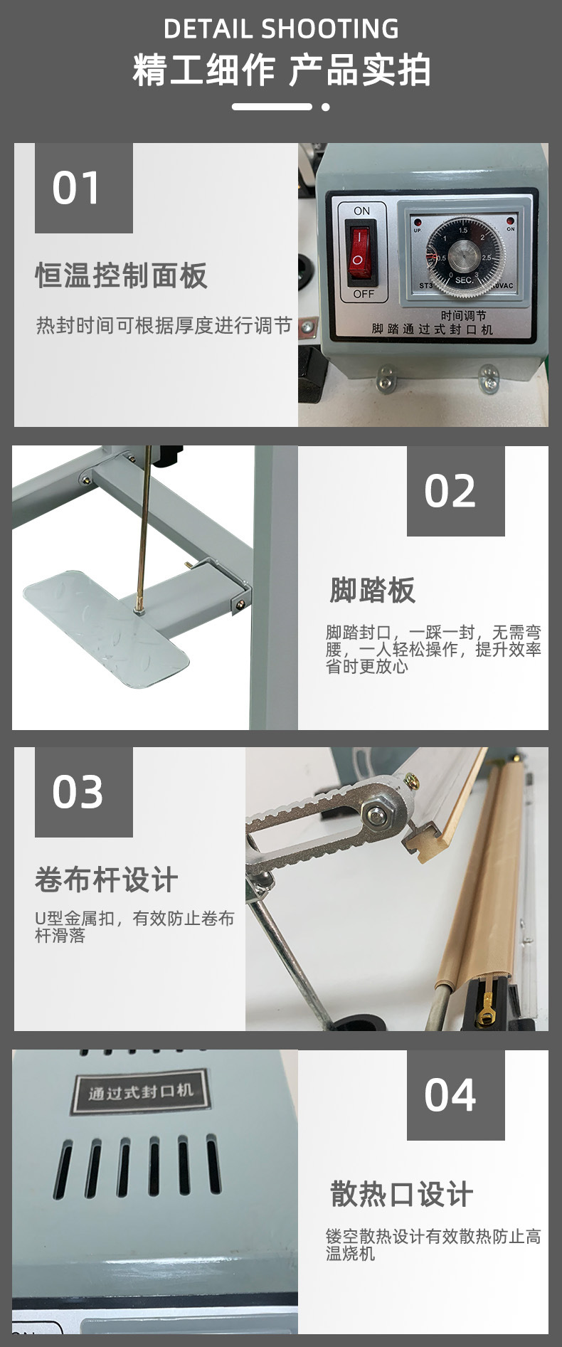 此外,?腳踏封口機(jī)還適用于各種塑料薄膜、?復(fù)合薄膜及鋁塑薄膜的封合,?廣泛應(yīng)用于食品、?土特產(chǎn)、?糖果、?茶葉、?醫(yī)藥、?五金等行業(yè)。?這種設(shè)備的操作簡單,?加熱時間可調(diào),?接通電源即可工作,?使得它在商店、?家庭、?工廠等環(huán)境中成為方便且經(jīng)濟(jì)的封口解決方案