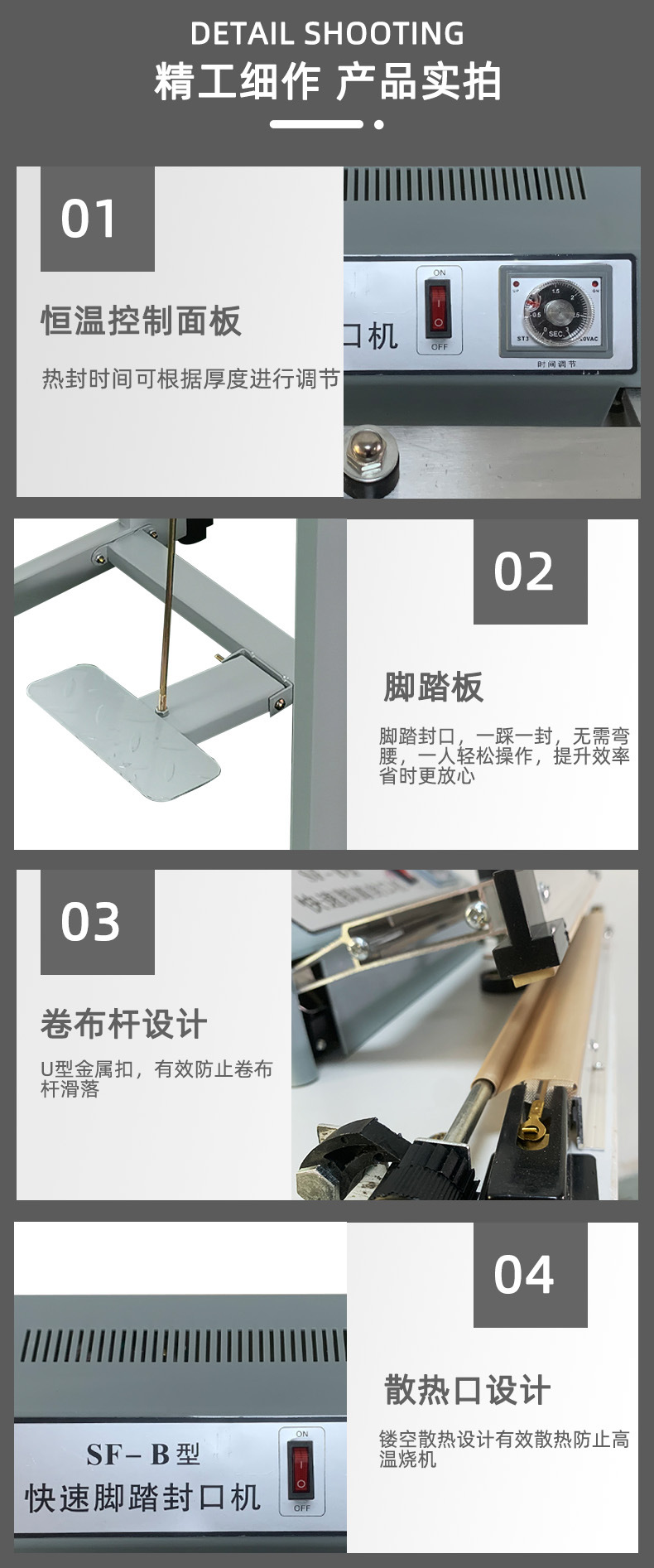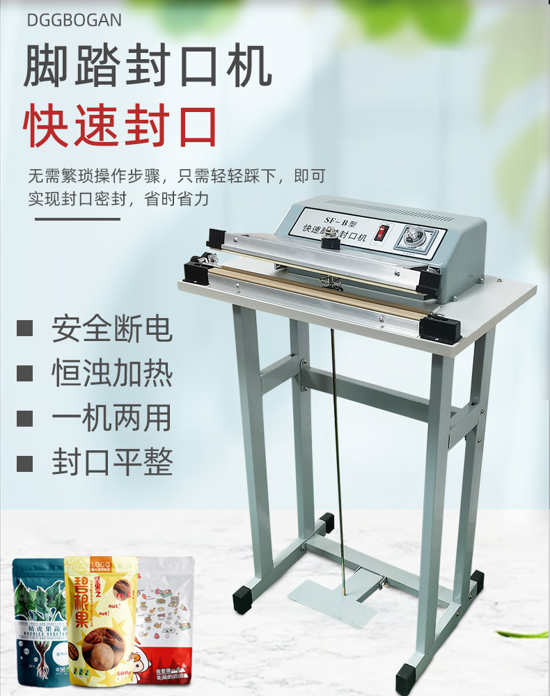 此外,?腳踏封口機(jī)還適用于各種塑料薄膜、?復(fù)合薄膜及鋁塑薄膜的封合,?廣泛應(yīng)用于食品、?土特產(chǎn)、?糖果、?茶葉、?醫(yī)藥、?五金等行業(yè)。?這種設(shè)備的操作簡單,?加熱時間可調(diào),?接通電源即可工作,?使得它在商店、?家庭、?工廠等環(huán)境中成為方便且經(jīng)濟(jì)的封口解決方案