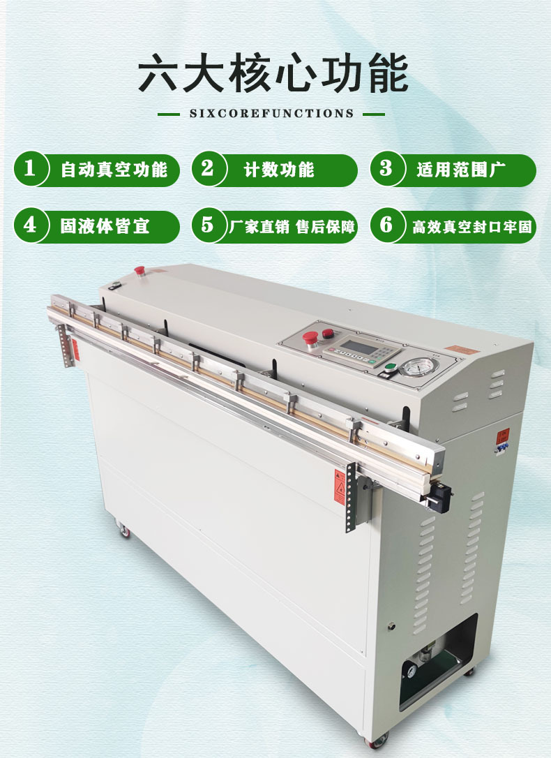 外抽真空包裝機(jī)通過抽氣嘴放入被包裝物的包裝袋內(nèi),?抽空空氣后完成封口,?實(shí)現(xiàn)了抽真空包裝的全自動(dòng)化。?這種機(jī)器采用了國際先進(jìn)的控制技術(shù),?具有自動(dòng)定型包裝袋、?抽真空等功能,?從而使產(chǎn)品具有外觀美觀、?保鮮、?防變質(zhì)和延長儲(chǔ)存時(shí)間等特點(diǎn)。?外抽式真空機(jī)特別適用于食品、?藥物、?土特產(chǎn)、?電子元件、?服裝等進(jìn)行真空、?封口包裝,?不受包裝物大小及體積的限制,?任意進(jìn)行真空包裝。?其適用范圍廣泛,?經(jīng)濟(jì)效益高,?使用方便,?能夠有效地防止物料的迅速氧化和抑制好氧性細(xì)菌的繁殖所引起的物料腐敗和變質(zhì)。?