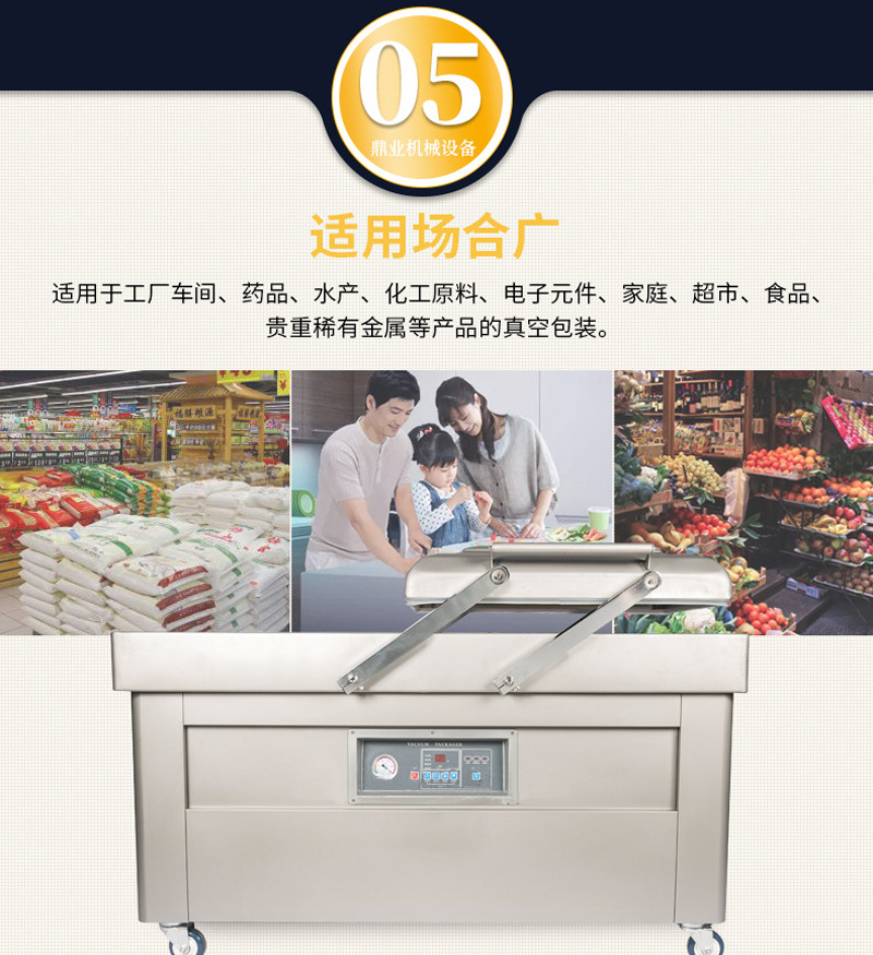 - 其他行業(yè):如化工、五金、工藝品等行業(yè)也可以使用雙室真空包裝機(jī)進(jìn)行包裝,提高產(chǎn)品的檔次和附加值。