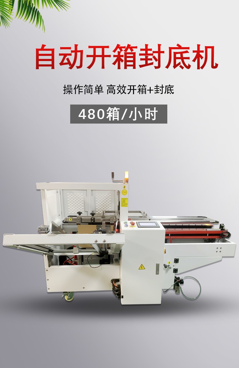其工作流程高效流暢,利用機(jī)械或真空裝置取箱、成型,再通過(guò)折疊和粘貼(如膠帶、熱熔膠)等方式完成封底。這一設(shè)備大幅減少了人工開(kāi)箱和封底的工作量,提高了包裝效率,并且可以精準(zhǔn)地完成任務(wù),保證紙箱的質(zhì)量和密封效果。