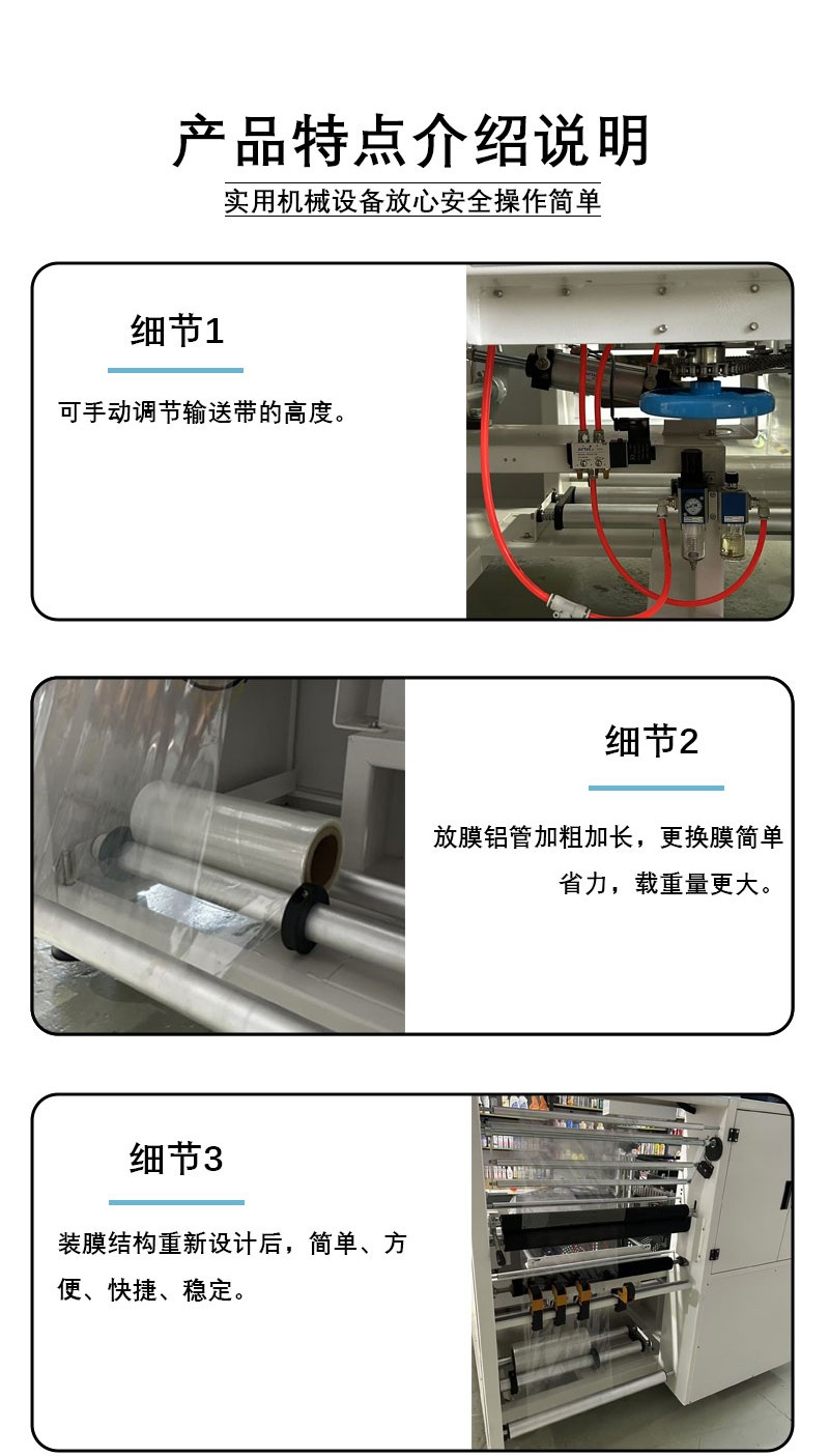 - 生產(chǎn)效率高:可配套自動化包裝流水線使用,進料、入袋、封切、收縮自動完成,包裝速度快,效率高,能顯著降低人工成本,提高生產(chǎn)效率126.