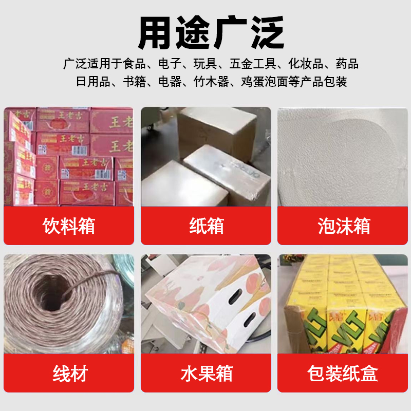 • 家居建材行業(yè):可用于包裝小型家居用品、瓷磚、地板等產(chǎn)品。例如,對一些體積較小的家居裝飾品進(jìn)行多件包裝,或者對瓷磚進(jìn)行單張或多張集合包裝,方便搬運(yùn)和銷售 。