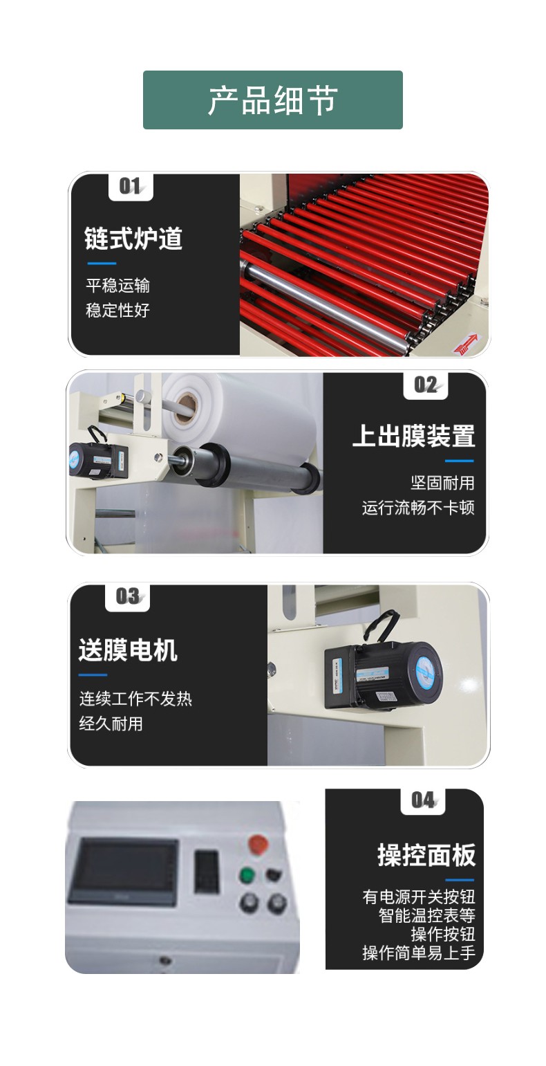 • 按自動化程度分:可分為半自動袖口式包裝機和全自動袖口式包裝機。半自動的需要人工參與部分操作,如放置產(chǎn)品、啟動封口等;全自動則可以自動完成產(chǎn)品的進料、包裝、封口等一系列操作,效率更高。