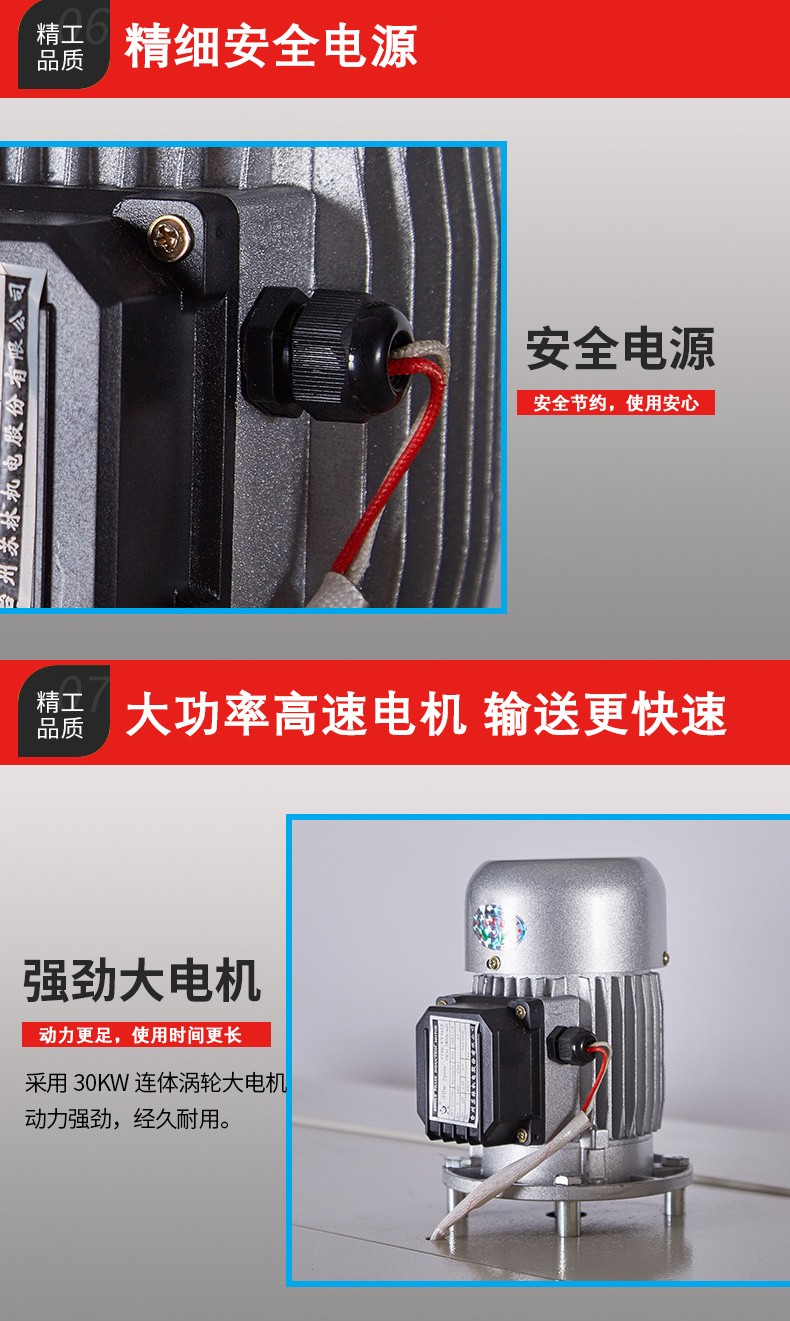 噴氣系統(tǒng):通過風(fēng)機(jī)和噴氣嘴將熱空氣均勻地噴射到 PE 薄膜上。風(fēng)機(jī)提供強(qiáng)大的氣流動(dòng)力,噴氣嘴的設(shè)計(jì)則保證熱空氣能夠全方位地覆蓋薄膜,使薄膜受熱均勻。噴氣嘴的形狀和數(shù)量會(huì)根據(jù)機(jī)器的規(guī)格和用途有所不同,有些機(jī)器的噴氣嘴是環(huán)形分布的,以確保產(chǎn)品各個(gè)方向都能受到熱空氣的作用。