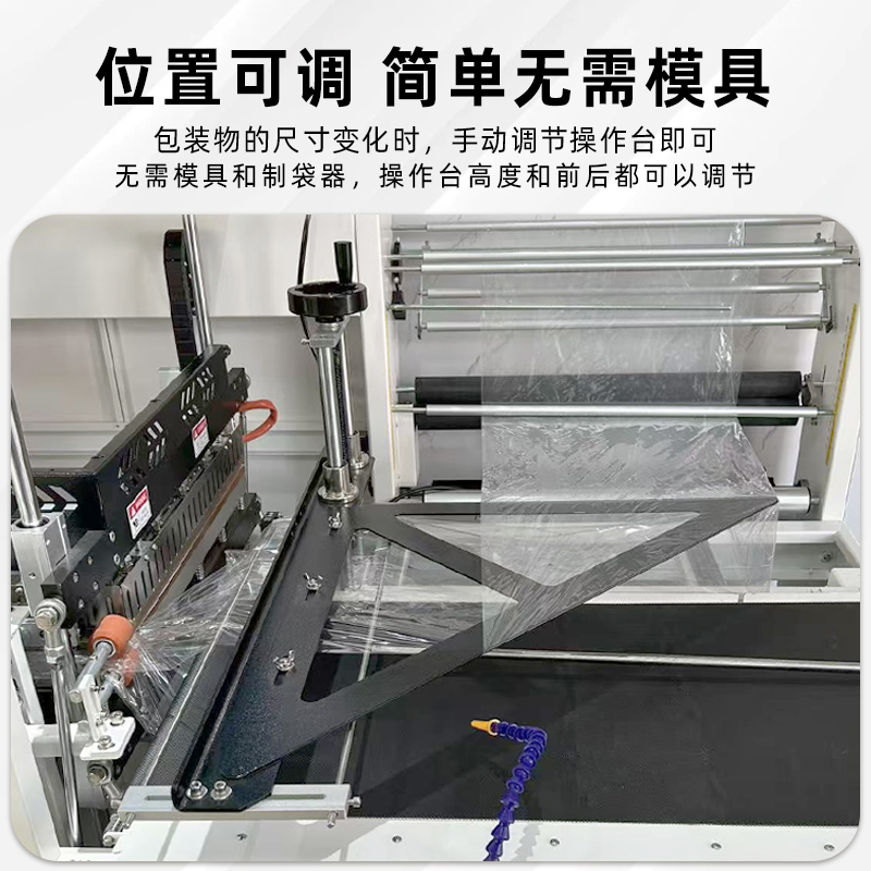 存放熱收縮膜卷(如 POF、PVC、PE 膜),配備自動張力控制器,確保膜材勻速、平穩(wěn)輸送,避免膜材褶皺或斷裂(部分機型支持 “雙膜卷切換”,減少換膜停機時間)。 - 垂直封切機構(gòu):