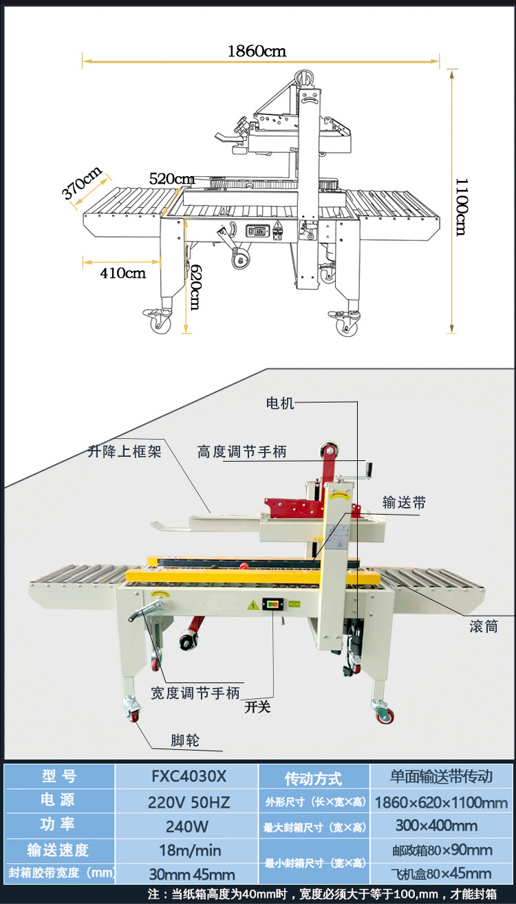 FXC4030X-飛機盒牛皮紙膠帶封箱機 自動封口機 封箱器設(shè)備封箱打包器