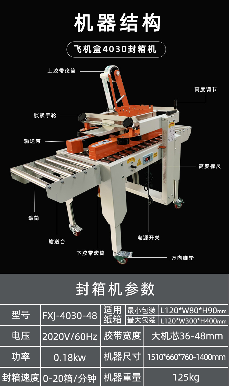 4030X全自動(dòng)紙箱膠帶封箱機(jī)郵政紙箱包裝機(jī)膠帶封箱透明膠帶打包