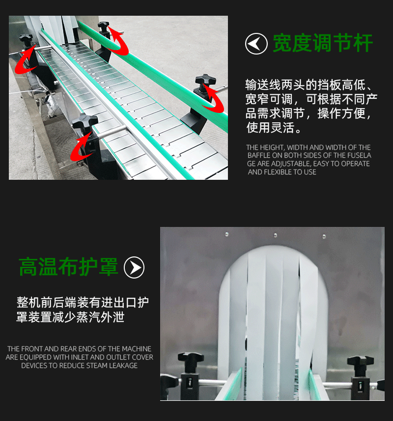 蒸汽收縮機(jī)是新一代收縮膜機(jī),設(shè)計(jì)精巧, 外型美觀,不占空間,移動(dòng),安裝迅速快捷,超大范圍的調(diào)節(jié),使其可適用于各種輸送帶和滑道。