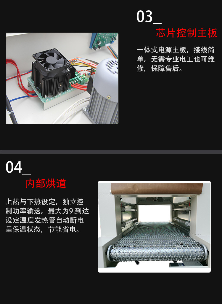 PRODUCT CENTER熱收縮機(jī)的使用非常簡單,只需將產(chǎn)品放入收縮機(jī)中,調(diào)整好溫度和時(shí)間,即可完成收縮包裝。此外,收縮機(jī)還帶有自動計(jì)數(shù)功能,可以準(zhǔn)確計(jì)算出包裝數(shù)量,提高您的生產(chǎn)效率。