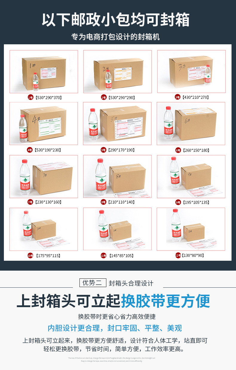 封箱機(jī)主要適用于紙箱的封箱包裝,既可單機(jī)作業(yè),也可與流水線配套使用,它可單箱作業(yè),也可與紙箱成型開箱機(jī)、裝箱機(jī)、貼標(biāo)機(jī)、捆包機(jī)、棧板堆疊機(jī)、輸送機(jī)等設(shè)備配套成包裝流水線使用,為包裝流水線作業(yè)必須的設(shè)備。